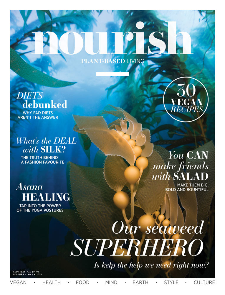 In this issue of Nourish we dive into the ocean to learn about the seaweed superheroes that can help reverse climate change and feed us sustainably. We also debunk diet fads, talk about natural detox, and how to transition kids to plant-based eating. As always, you’ll be inspired with plenty of delicious vegan recipes to suit all tastes.