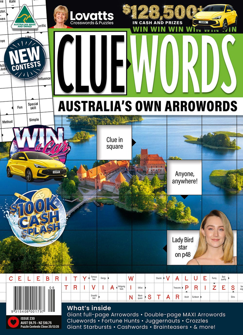 A more relaxed experience than our traditional crosswords, Cluewords magazine features everyday, celebrity, and trivia crosswords in the popular clue-in-square format. Every issue features loads of popular cluewords, along with our magnificent double-page MAXIs, fabulous Fortune Hunts, juicy Juggernauts, captivating Crozzles, sparkling Starbursts, and bemusing brainteasers. With contests to enter and prizes to win, there’s something for everyone.