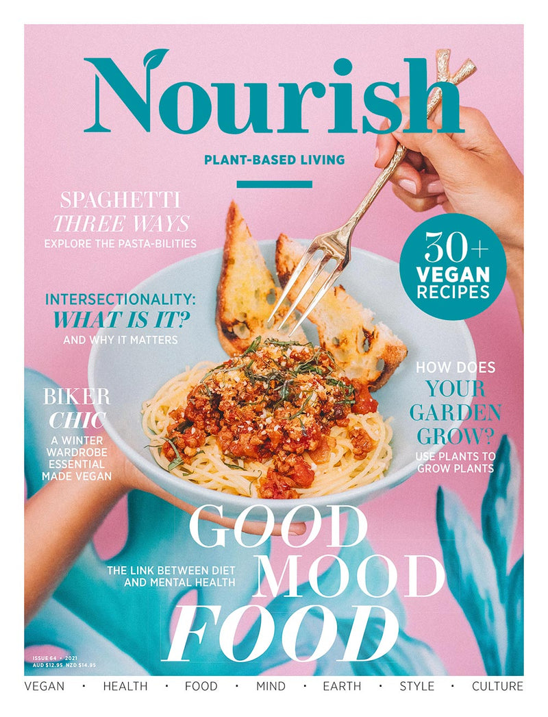 In this issue of Nourish we explore the link between what we eat and mental health, the importance of omega-3s, and what it means to be an intersectional vegan. We also make our own non-toxic cleaning products, find the best treatments for radiant skin, and learn about veganic gardening. Indulge in all the plant-based deliciousness from dinner parties and high teas to wholefood bowls for the soul.