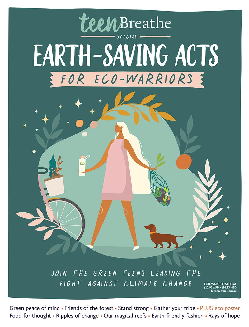 At Teen Breathe we are passionate about protecting our planet. Our Earth-Saving Acts for Eco-Warriors is a 64-page special edition that will give you a wide range of ideas and inspiration to make a positive contribution to your world. Plus, with our bonus fold-out poster and eco bookmarks, you’ll always be reminded of sweet ways to save our planet.