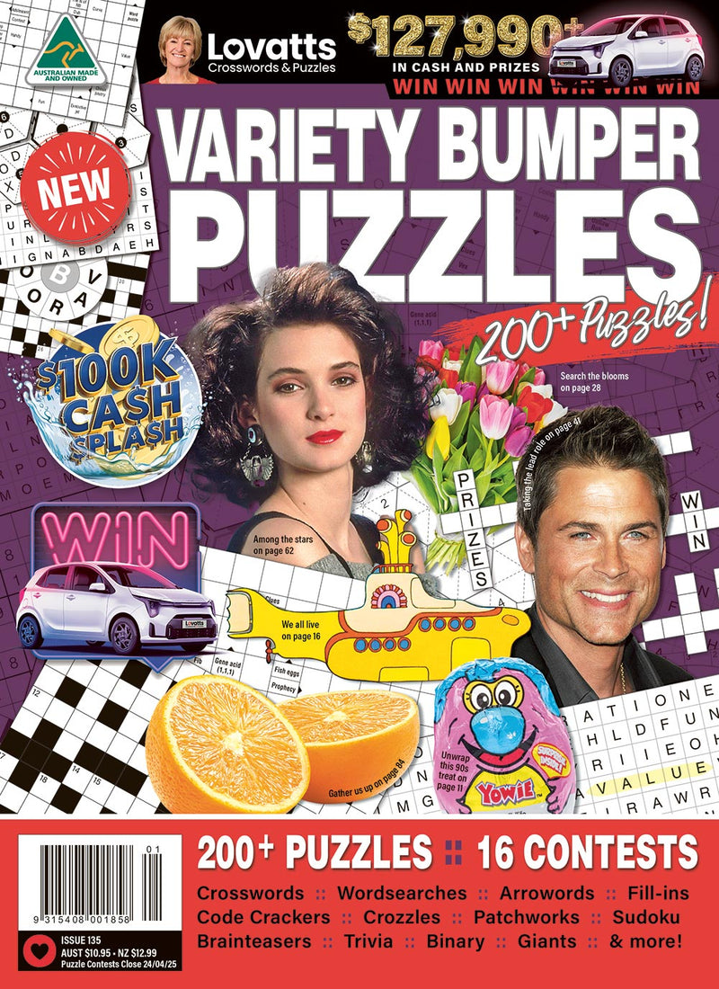 Filled to the brim with a fantastic mix of our most popular puzzles, Variety Bumper Puzzles will keep the whole family entertained for hours. Our biggest magazine ever with more than 120 pages of crosswords, wordsearches, arrowords, fill-ins, code crackers, crozzles, patchworks, sudoku, brainteasers, trivia, binary, and more, there’s something for every puzzler within its pages. We’ve made the print easy to ready in low lighting and included helpful solving hints & tips. Plus, there’s lots of cash and prizes up for grabs in our 14 contests, including the super-sized Jumbo Cross liftout competition.